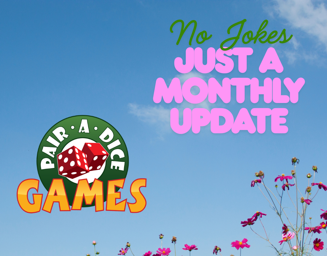 No jokes here, just a monthly update with Pair A Dice Games